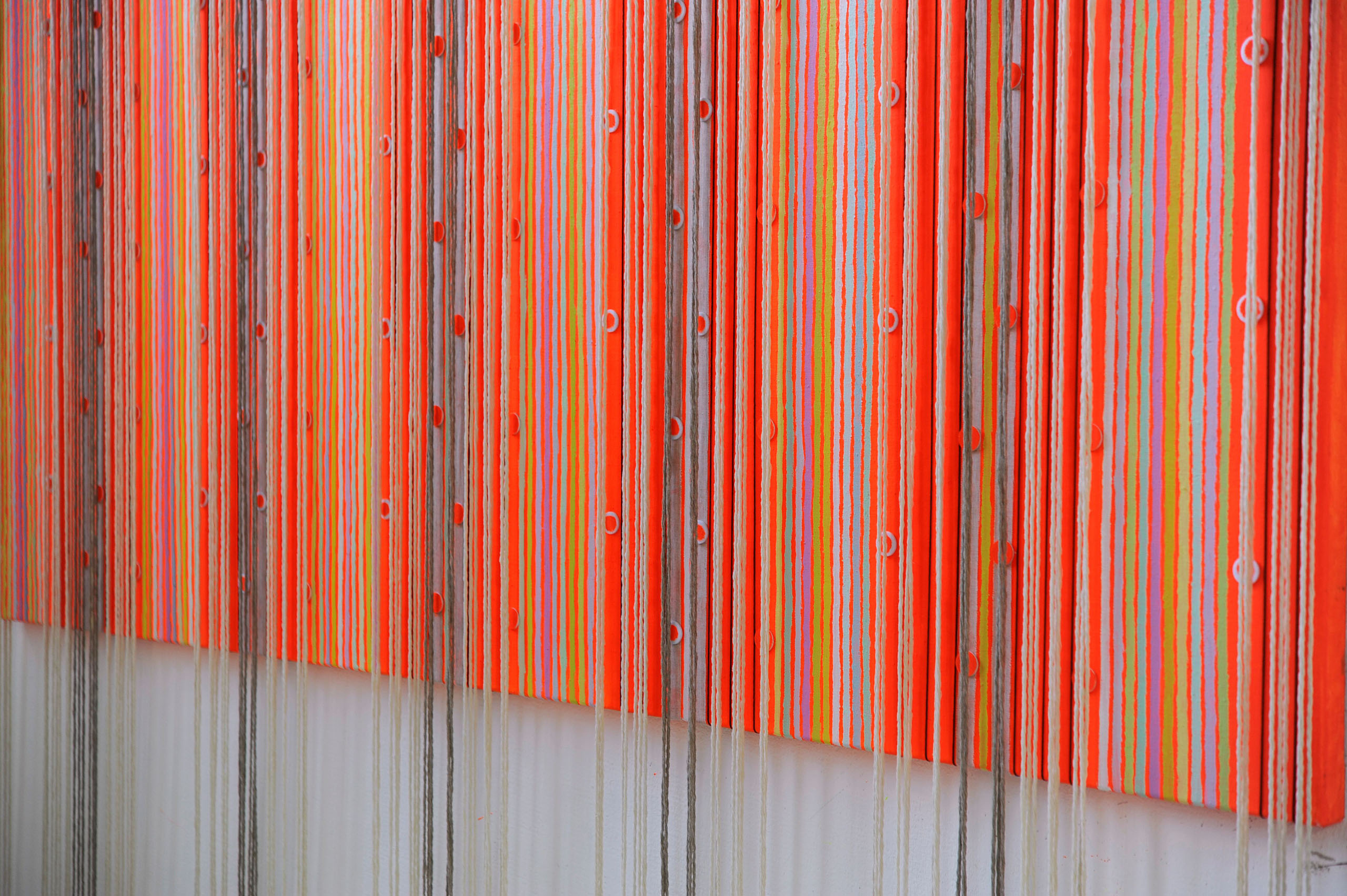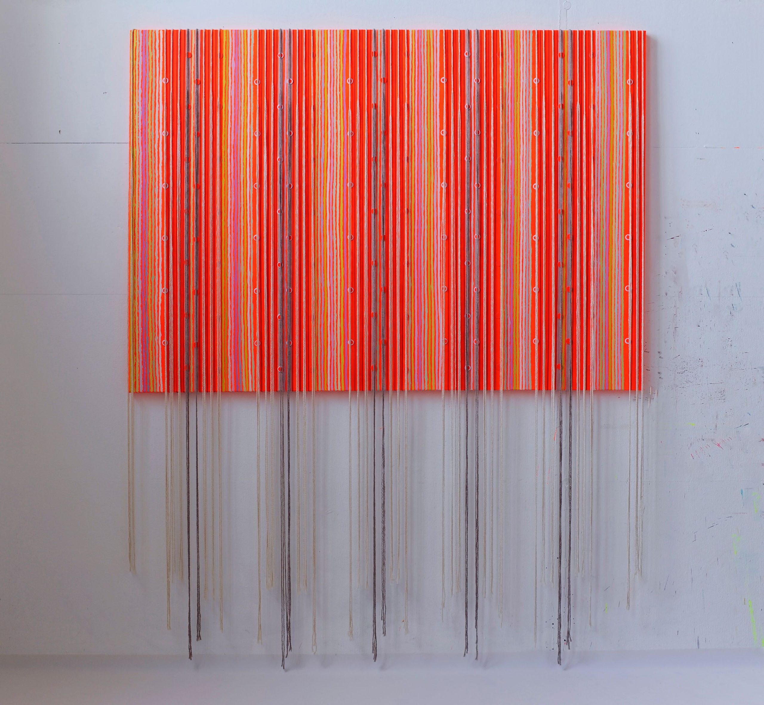 Bright Orange, 2025, Öl, Acryl, Baumwollgarn auf Leinwand, 250x200cm (Rahmen 140x200cm)