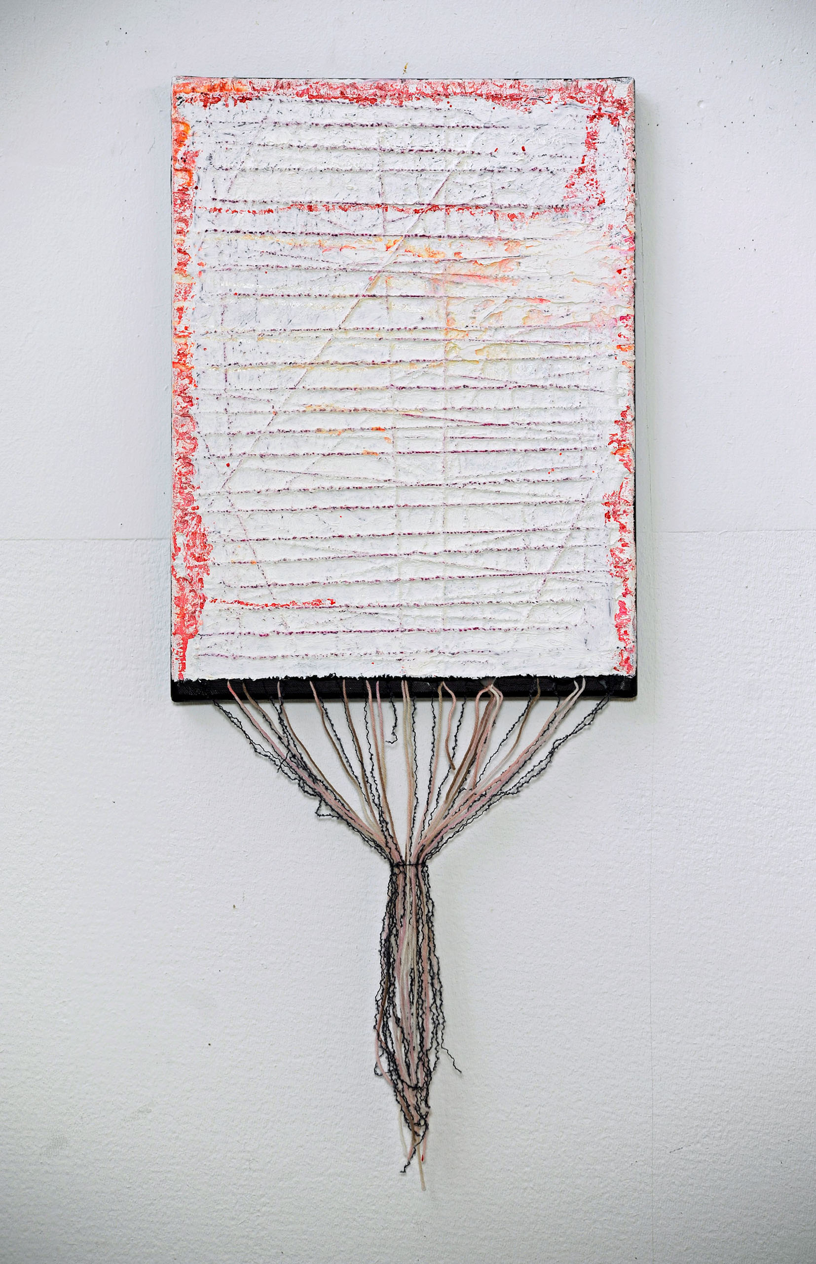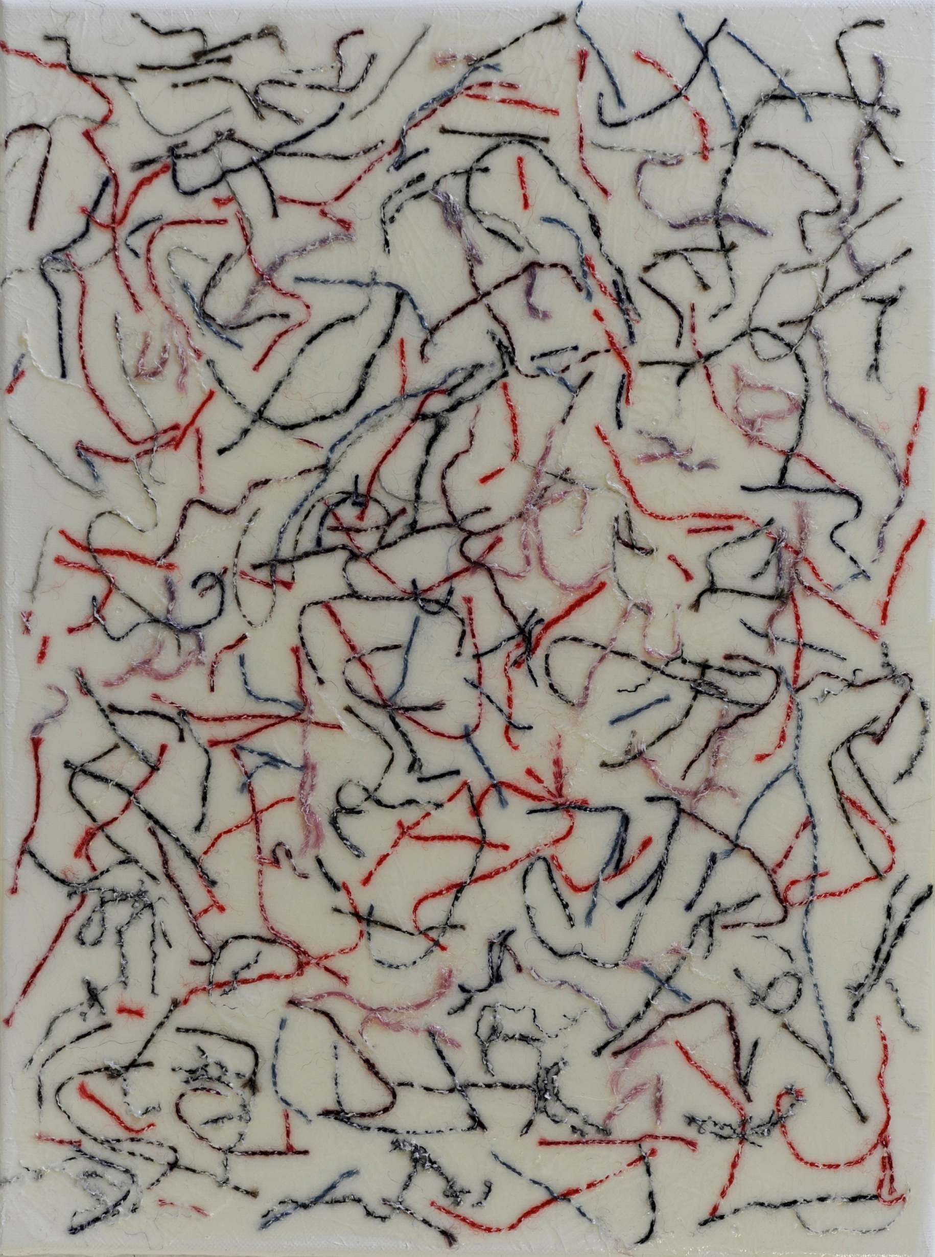 o. T., 2024, Öl, Acryl, Wollfäden auf HDF, 40x30cm