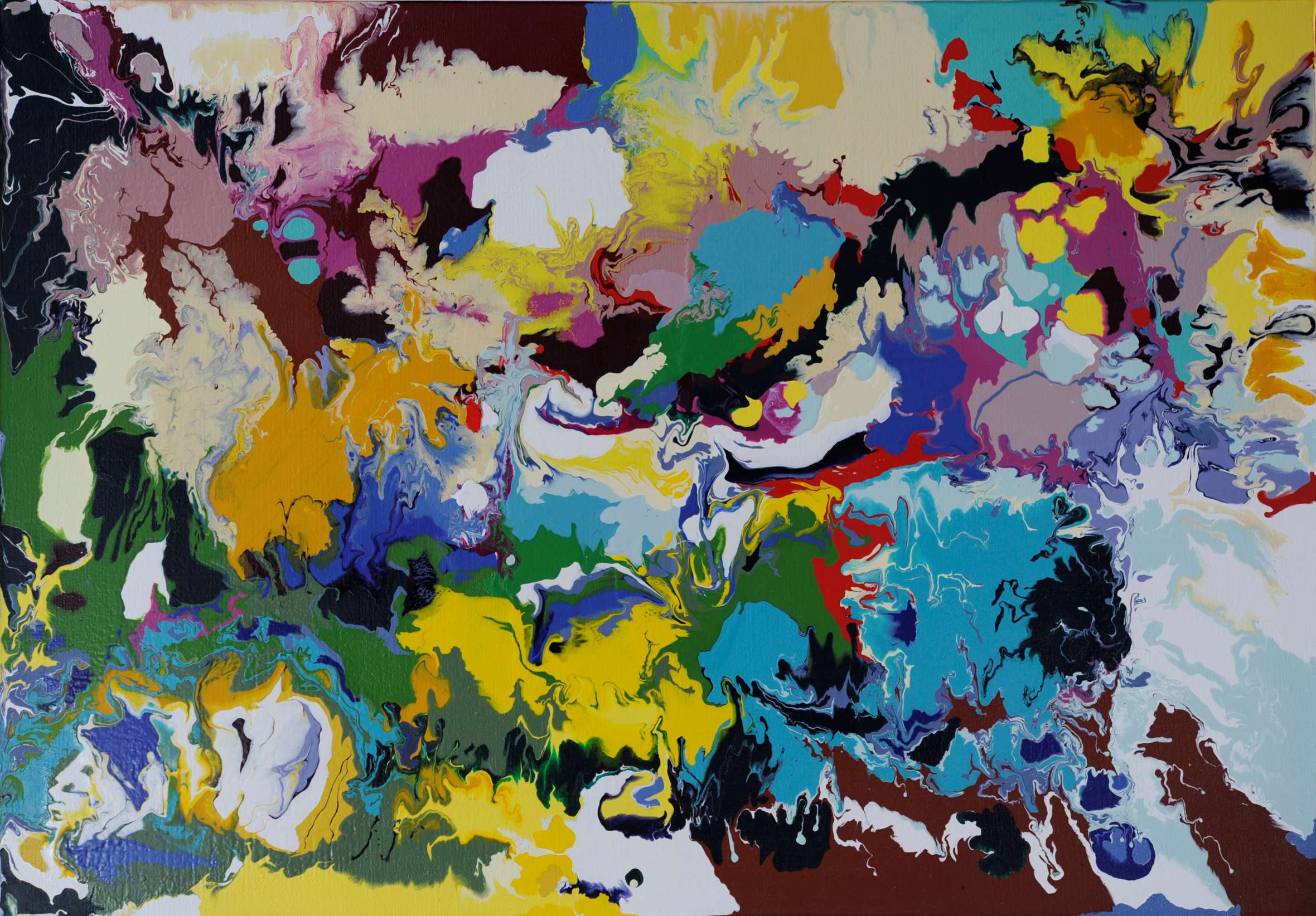 Cosmic sensation, 2024, Acryl, Tusche auf Leinwand, 140x100cm