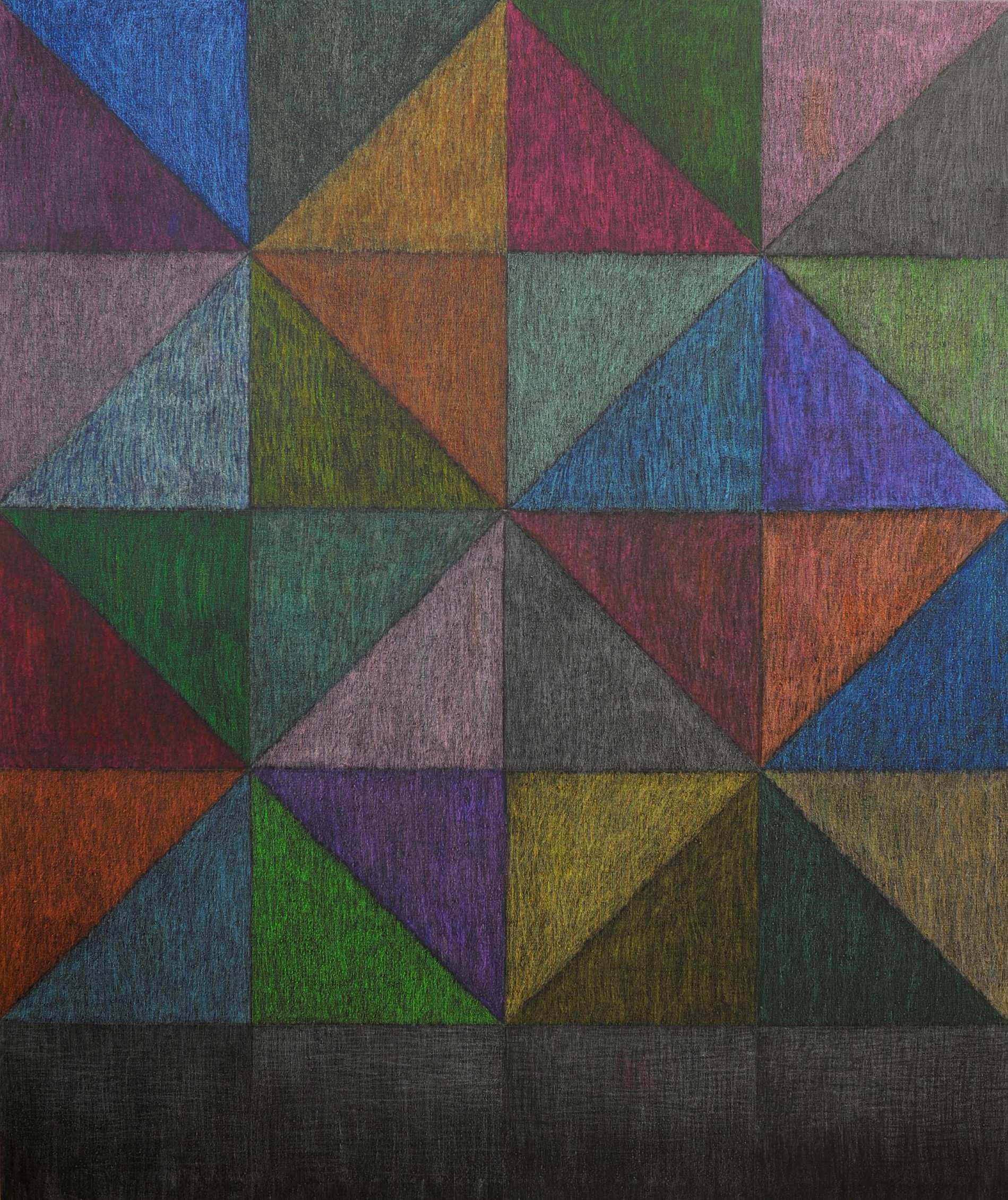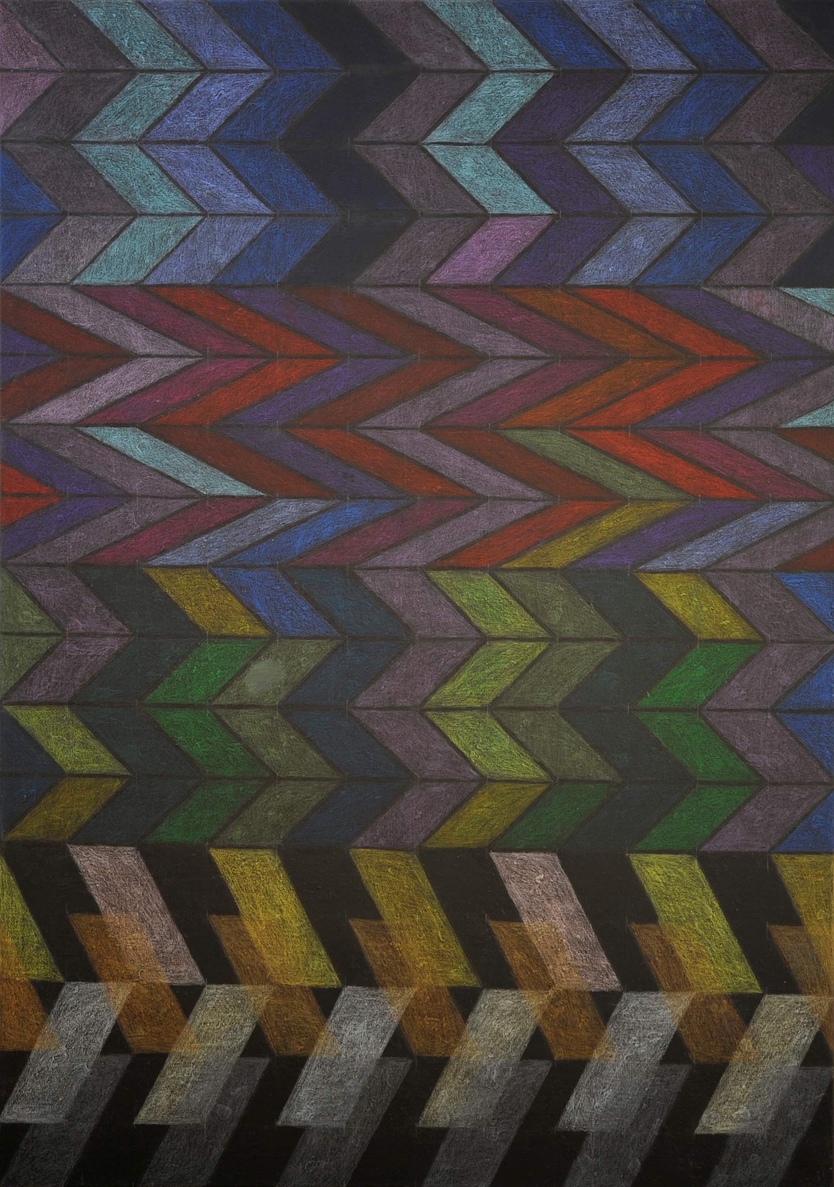 Zig zag pattern, 2024, Buntstifte auf schwarz grundierter Leinwand, 170x120cm
