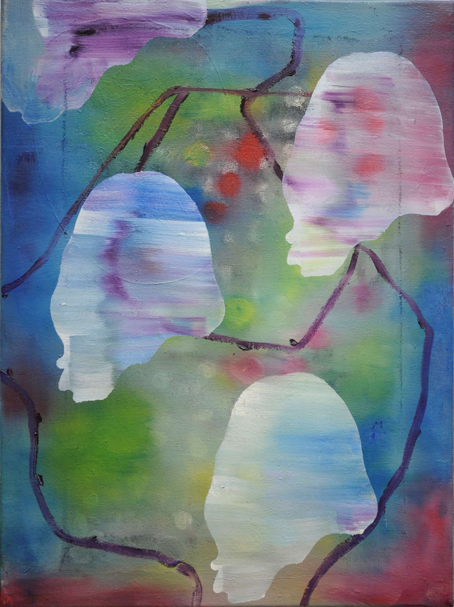 Kopf, dreifach, 2018, Öl auf Leinwand, 66x49 cm