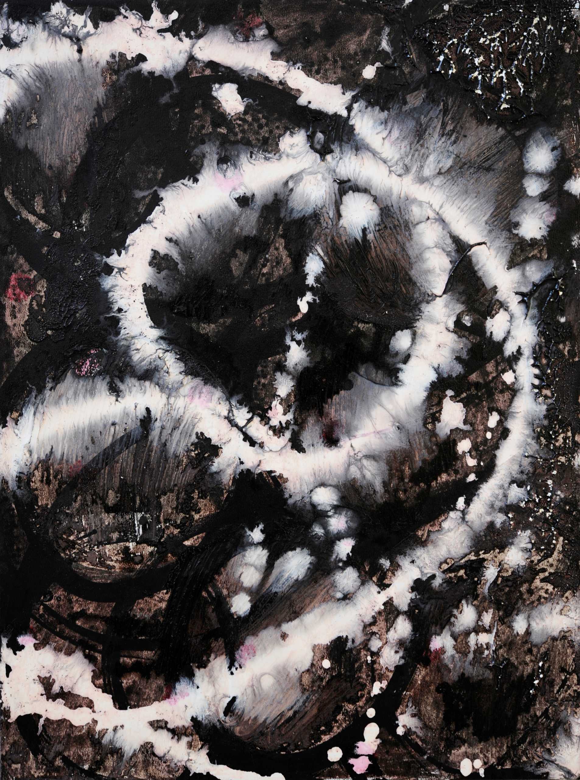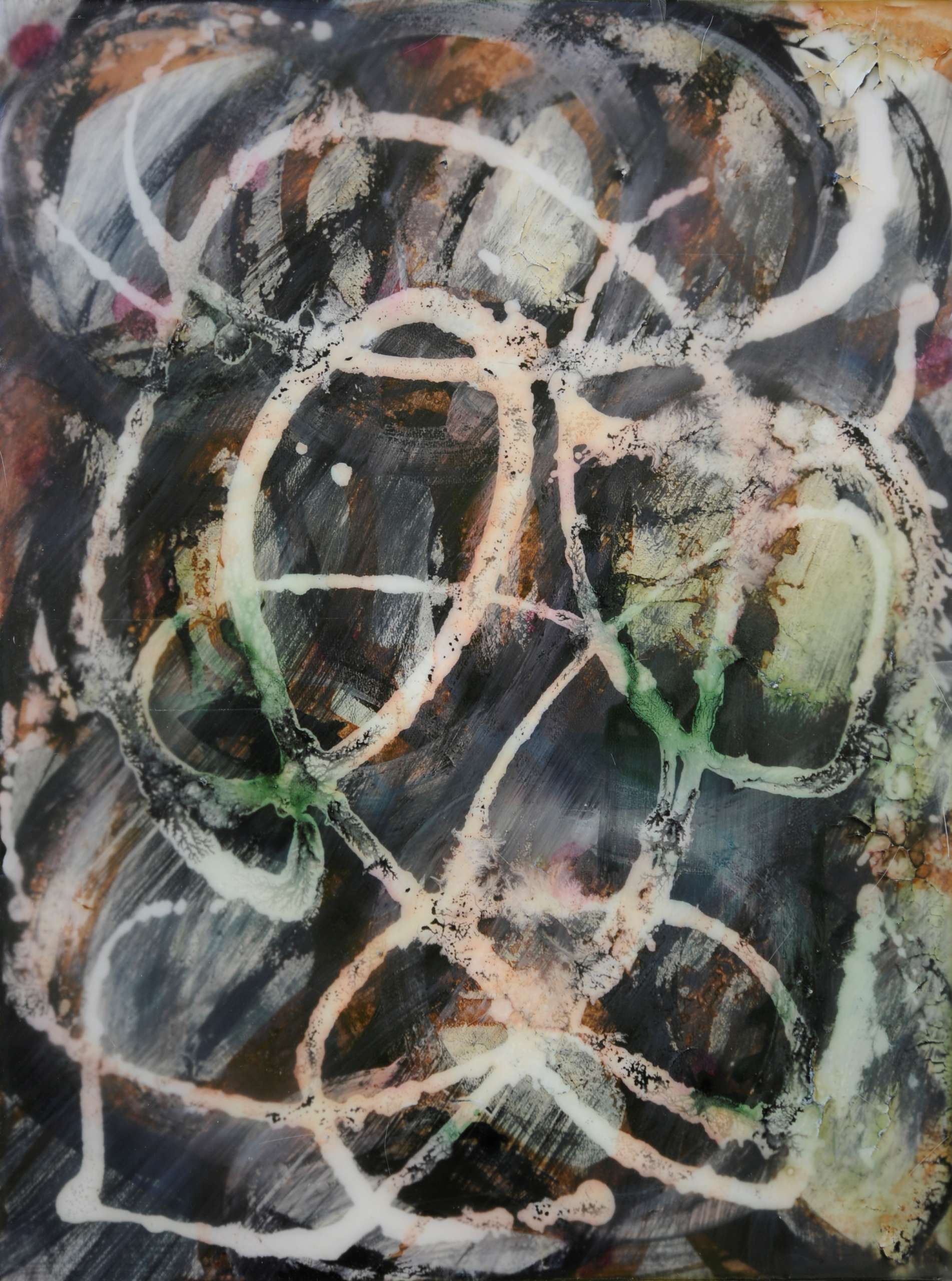 o. T., 2024, Öl, Tusche, Wachs auf HDF, 40x30cm
