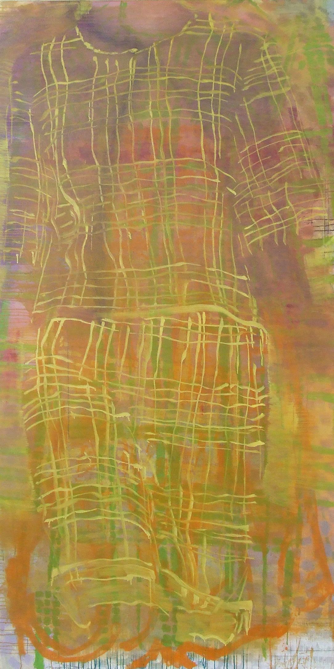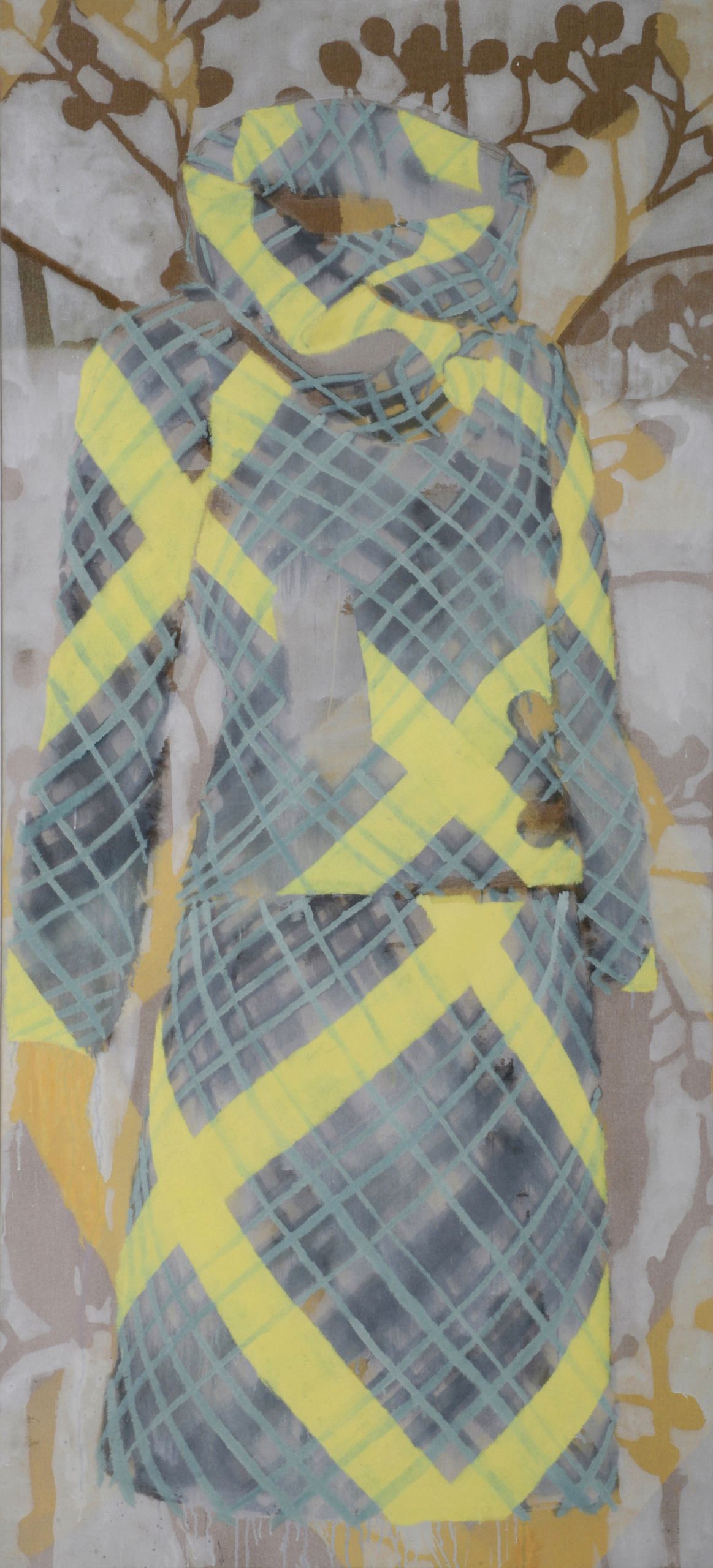 Kostüm mit gelben Bändern, 2005, Eitempera auf Leinwand, 240x110cm