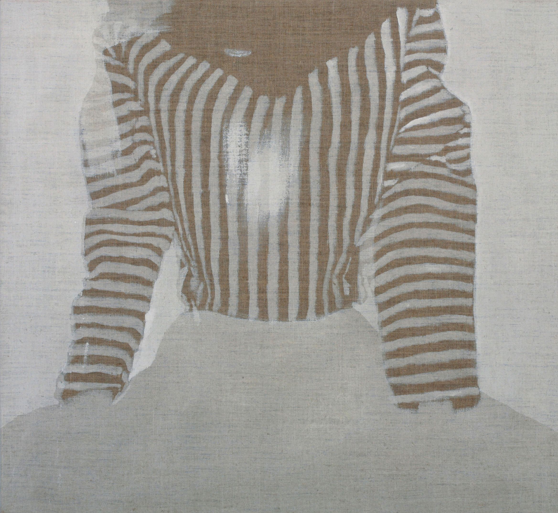 Oberteil mit Streifen, 2004, Acryl auf ungrundierter Leinwand, 84x91cm