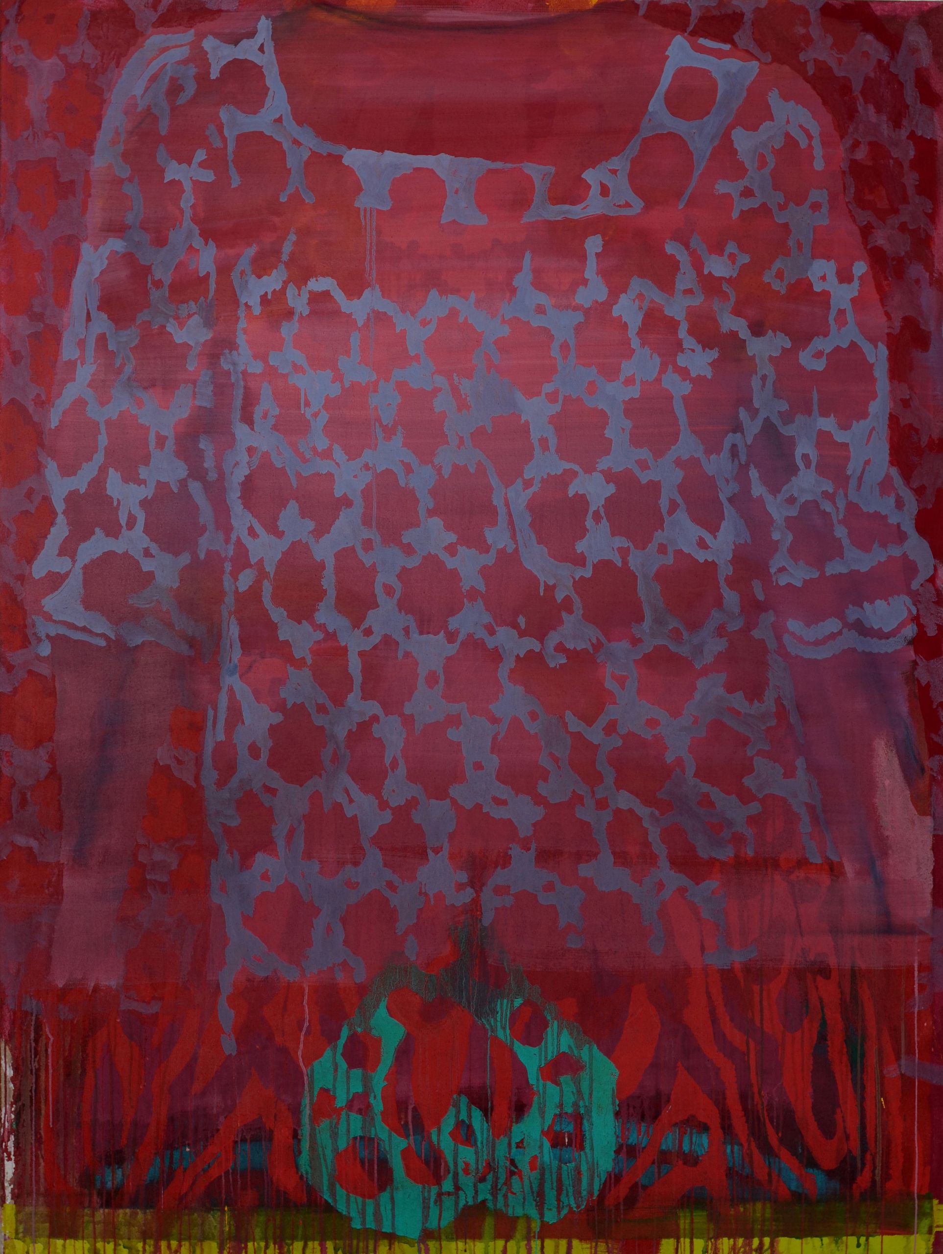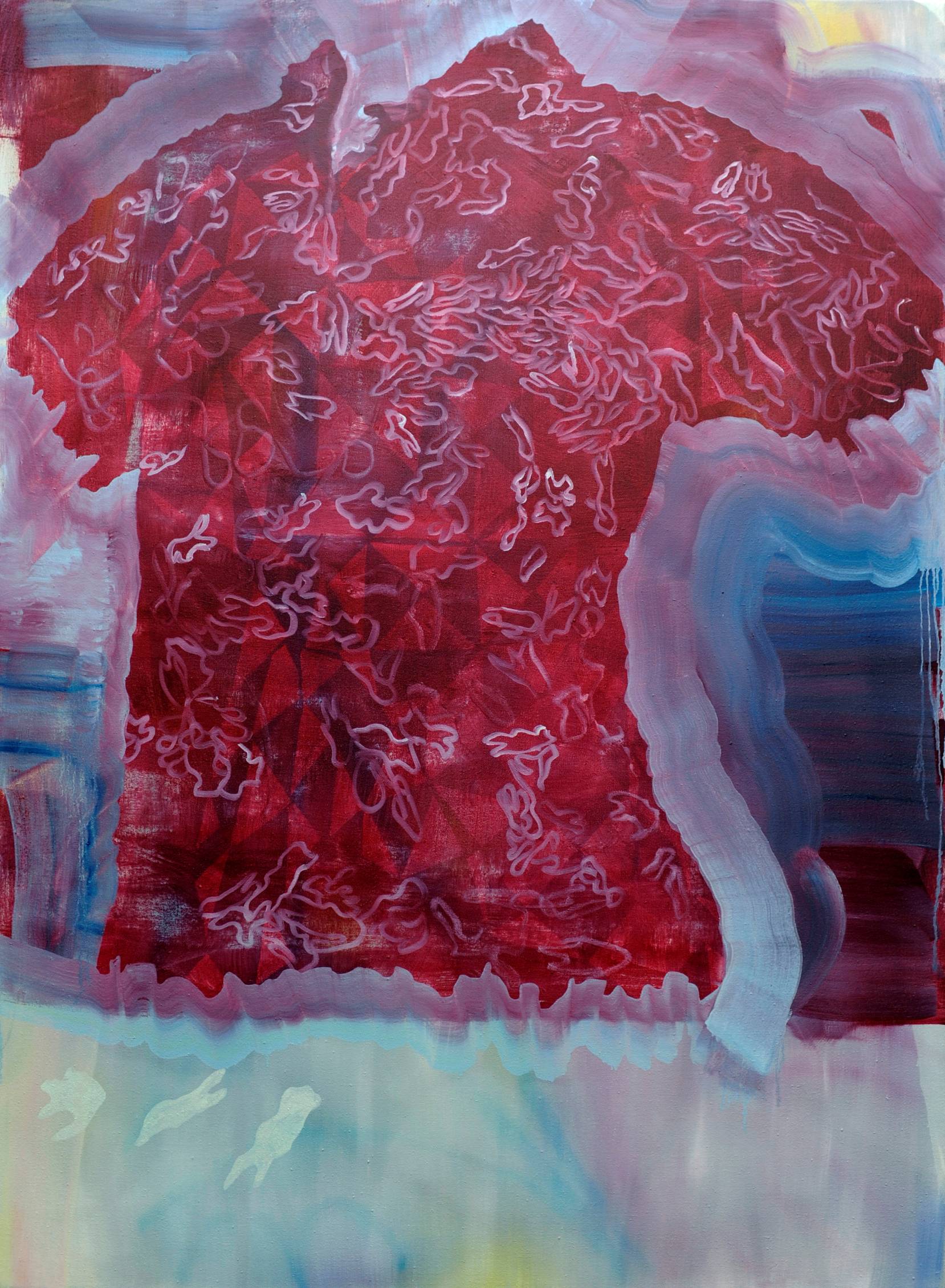 Pullover, rot-violett, 2009, Eitempera auf Leinwand, 240x130cm