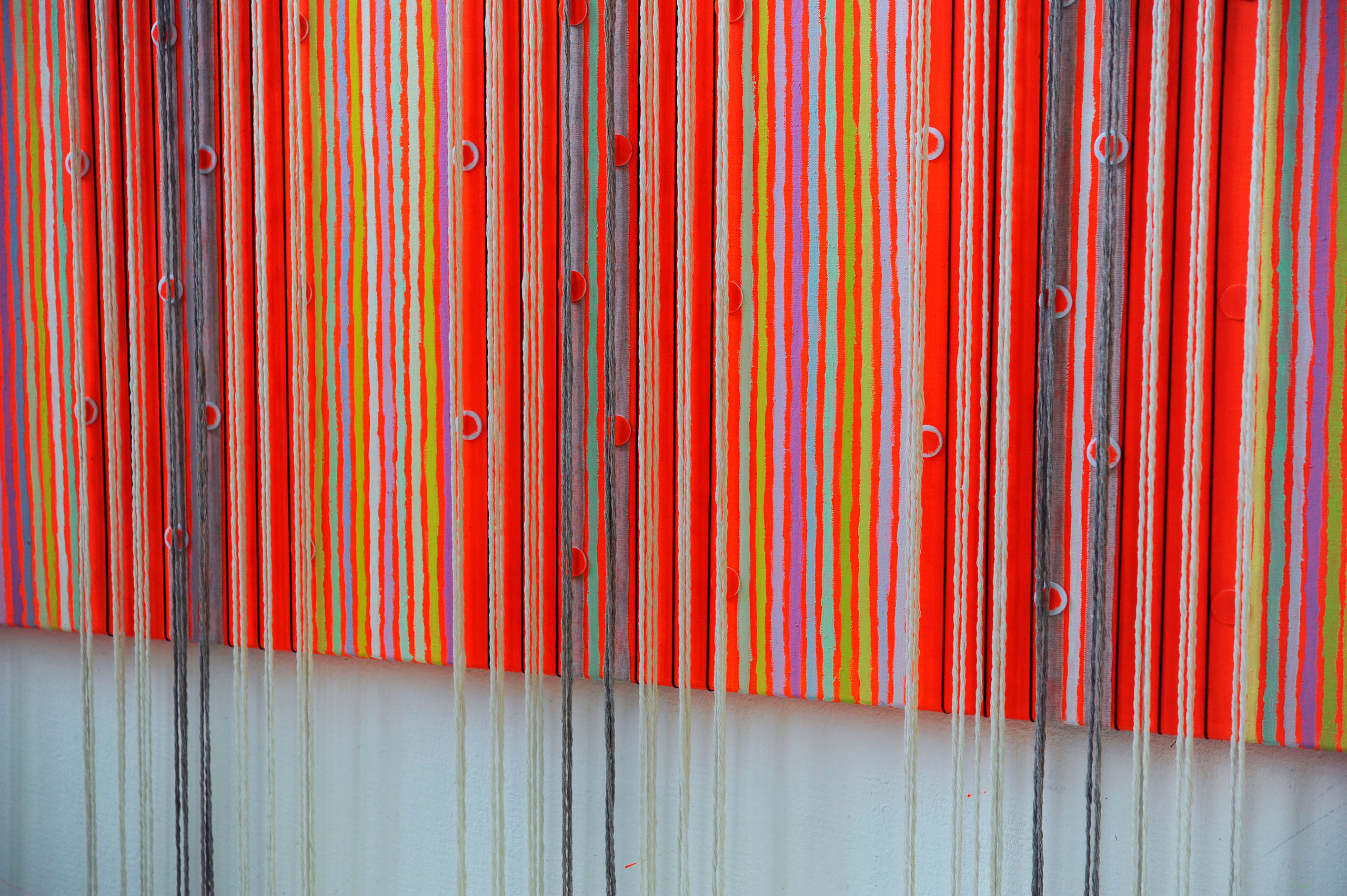 Bright Orange, 2025, Öl, Acryl, Baumwollgarn auf Leinwand, 250x200cm (Rahmen 140x200cm)