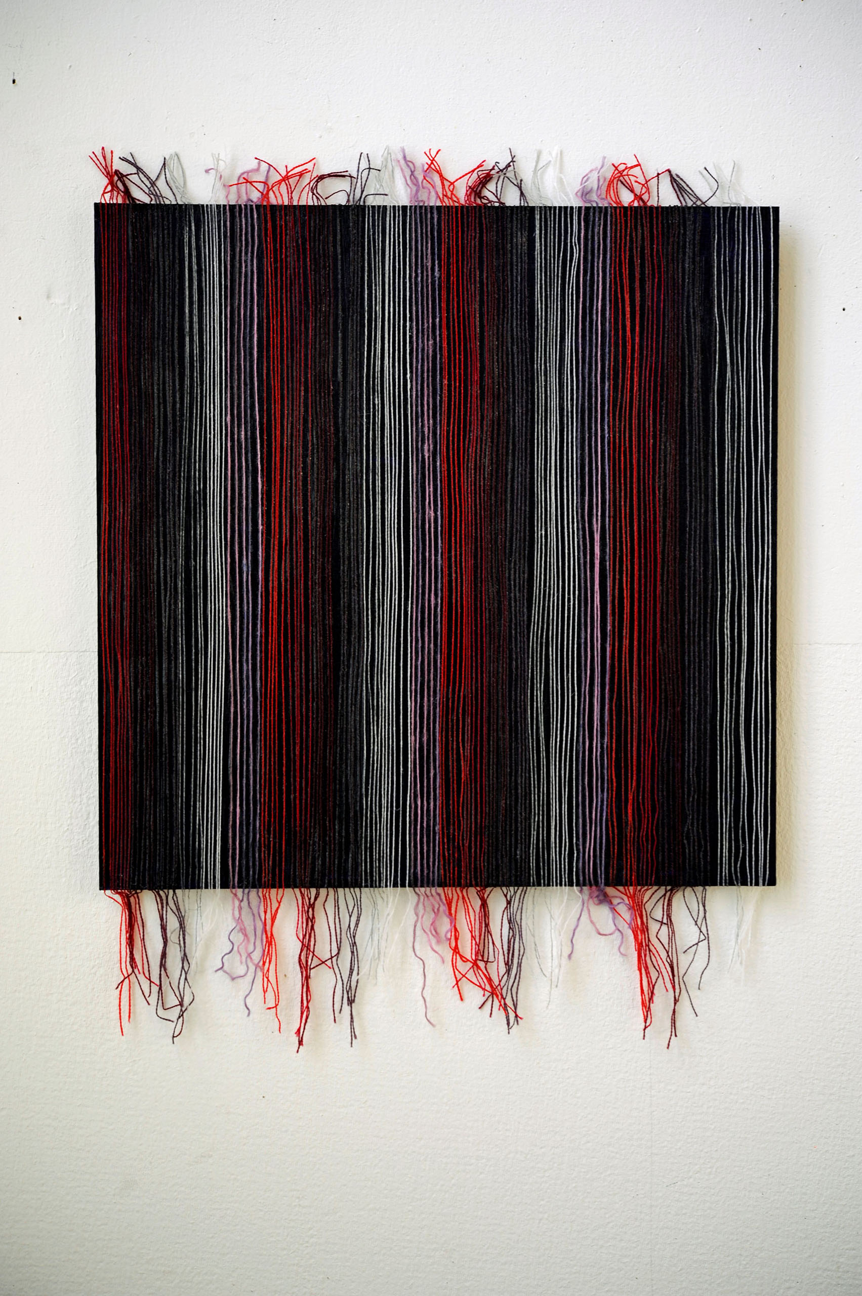 o.T., 2024, Acryl, Wollgarn auf Holz (HDF), 65x50cm (Holzplatte 50x50cm)