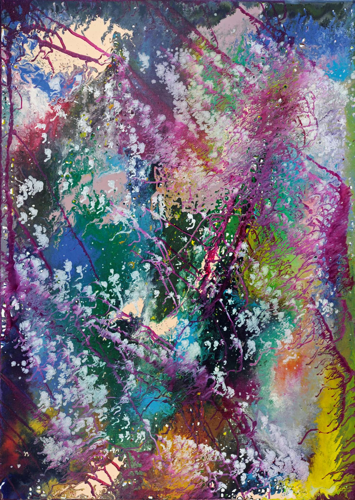 Cosmic sensation, 2024, Acryl, Tusche auf Leinwand, 140x100cm