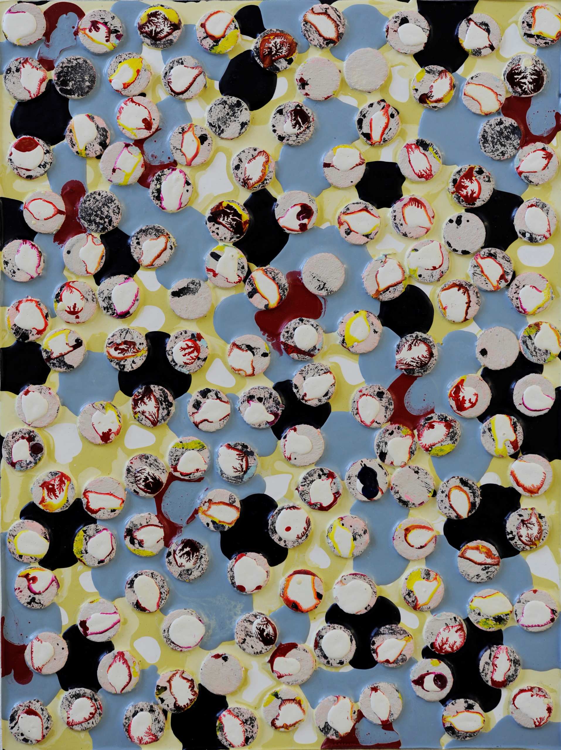 o. T., 2025, Acryl, Filzelemente auf HDF, 40x30cm