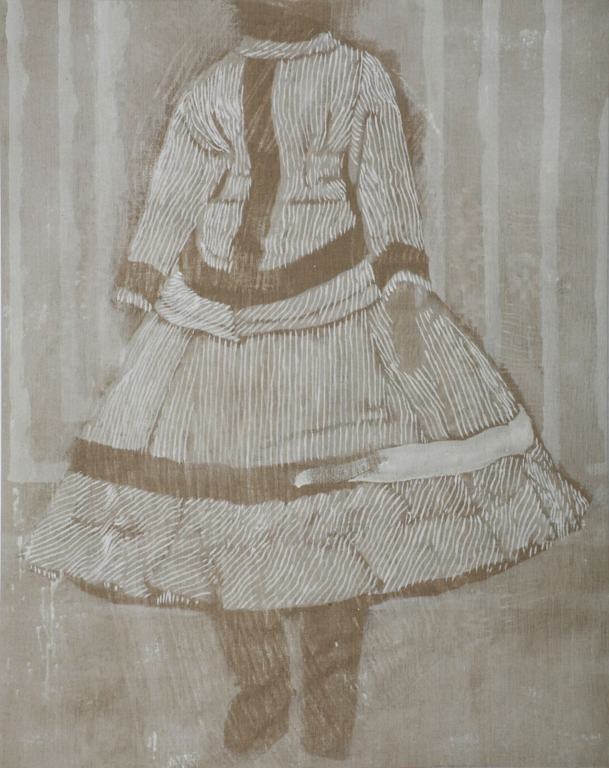 Kostüm mit ausgestelltem Rock, 2004, Acryl auf ungrundierter Leinwand, 158x125cm