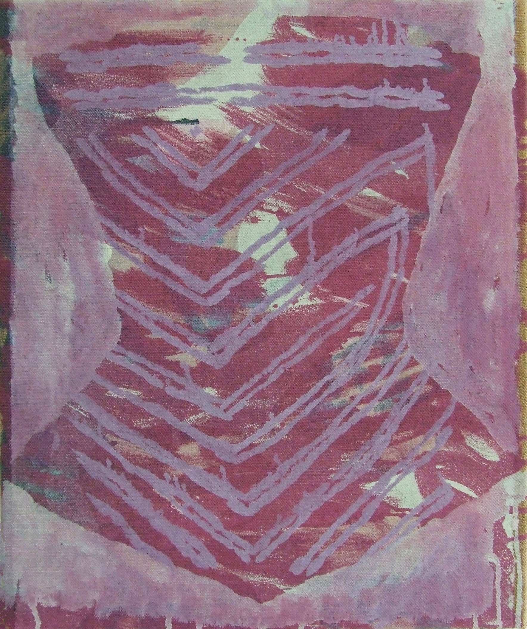 Oberteil mit Streifen, 2004, Acryl auf ungrundierter Leinwand, 84x91cm