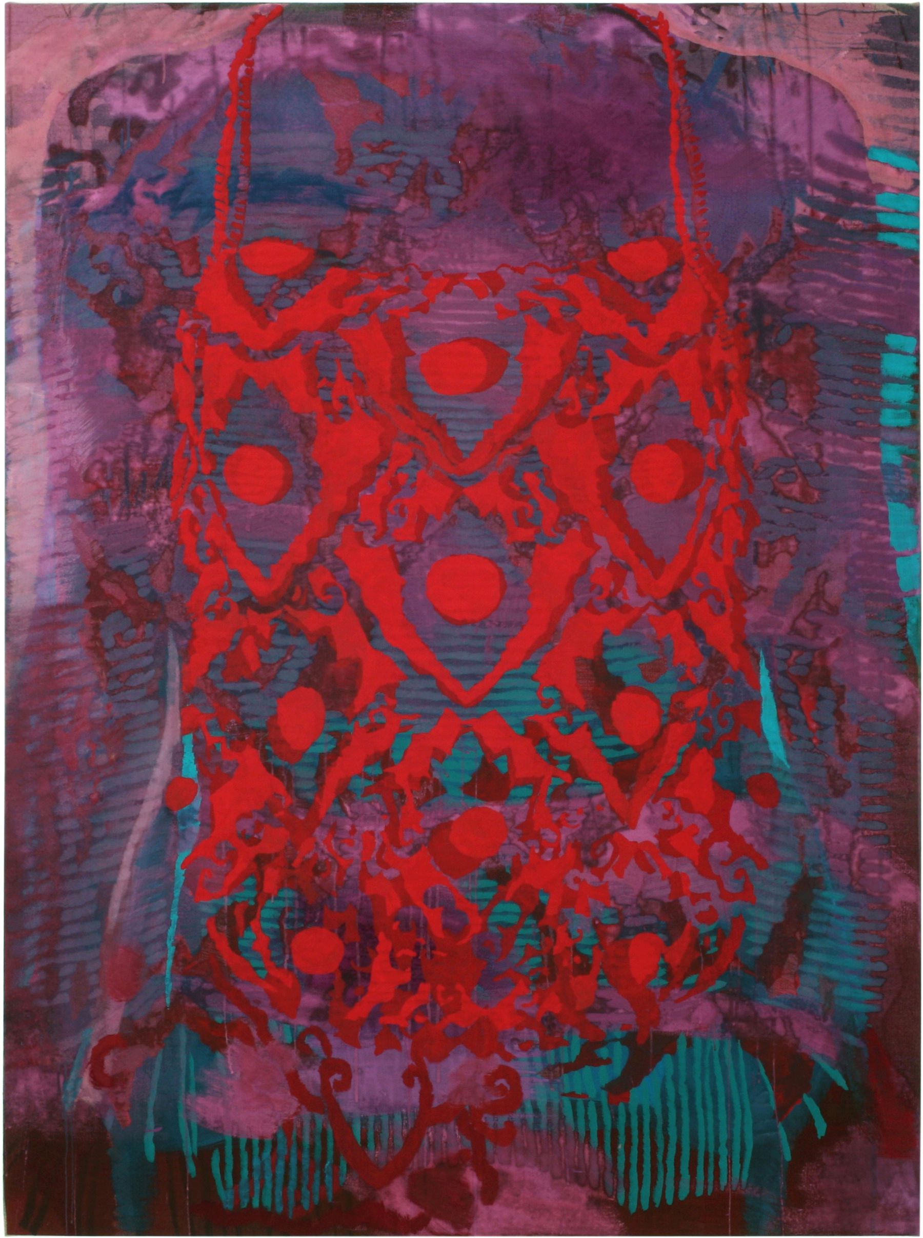 Pullover, rot-violett, 2009, Eitempera auf Leinwand, 240x130cm